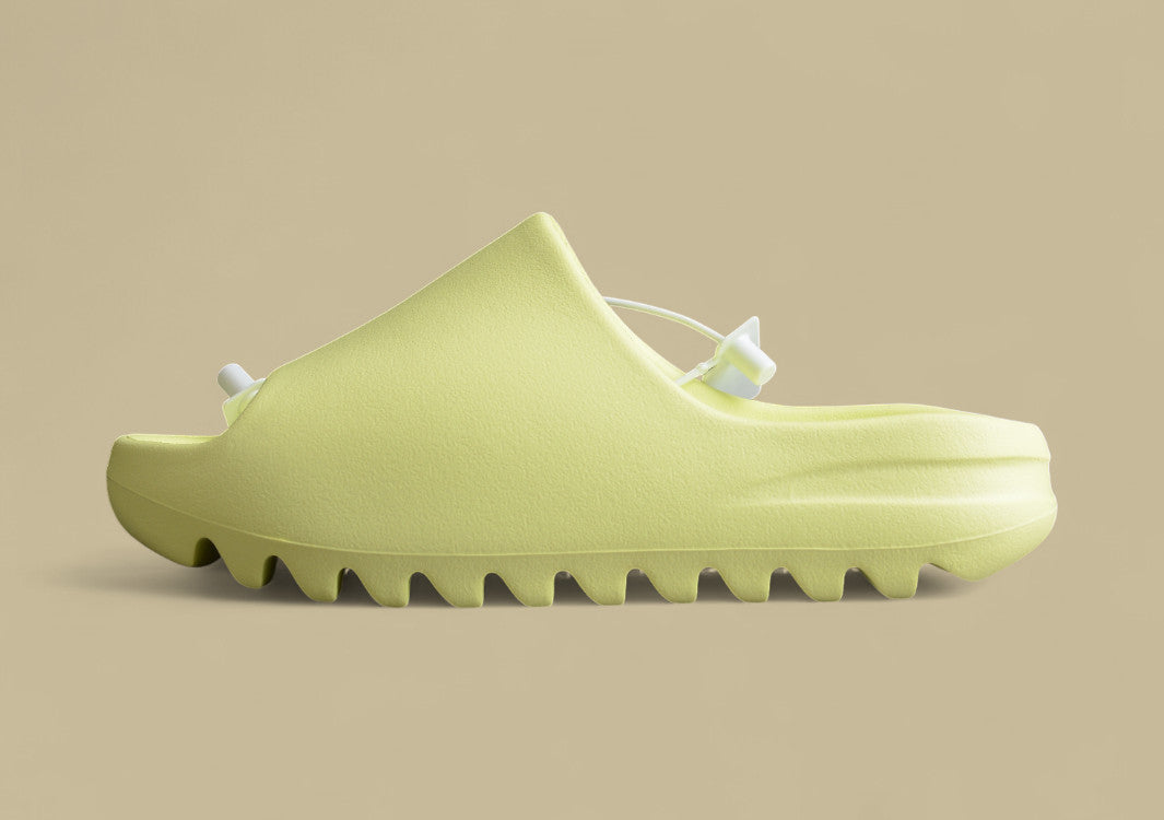 Auffälliger Yeezy Slide in Neon-Grün mit matter Struktur und futuristischem Look. Leicht, bequem und perfekt für Fashion-Statements bei jedem Schritt.