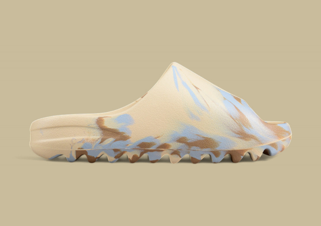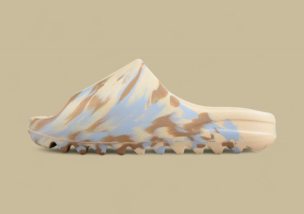 Der Yeezy Slide „MX Sand“ überzeugt mit einer einzigartigen marmorierten Farbgebung aus Creme-, Sand- und Beigetönen, die ihm eine stilvolle und gleichzeitig natürliche Optik verleiht. Dank der speziellen MX-Technologie ist jedes Paar in seinem Muster individuell – kein Design gleicht dem anderen. Der Slide besteht aus hochwertigem EVA-Schaum, der für ein ultraleichtes Tragegefühl, hohe Flexibilität und langanhaltenden Komfort sorgt. Die ergonomische Fußbettform passt sich dem Fuß perfekt an, während das wellenförmige Profil der Außensohle sicheren Halt garantiert. Ideal für den Alltag, das Reisen oder als stylischer Akzent zu jedem Freizeitlook – dieser Slide vereint Modebewusstsein mit purem Komfort.