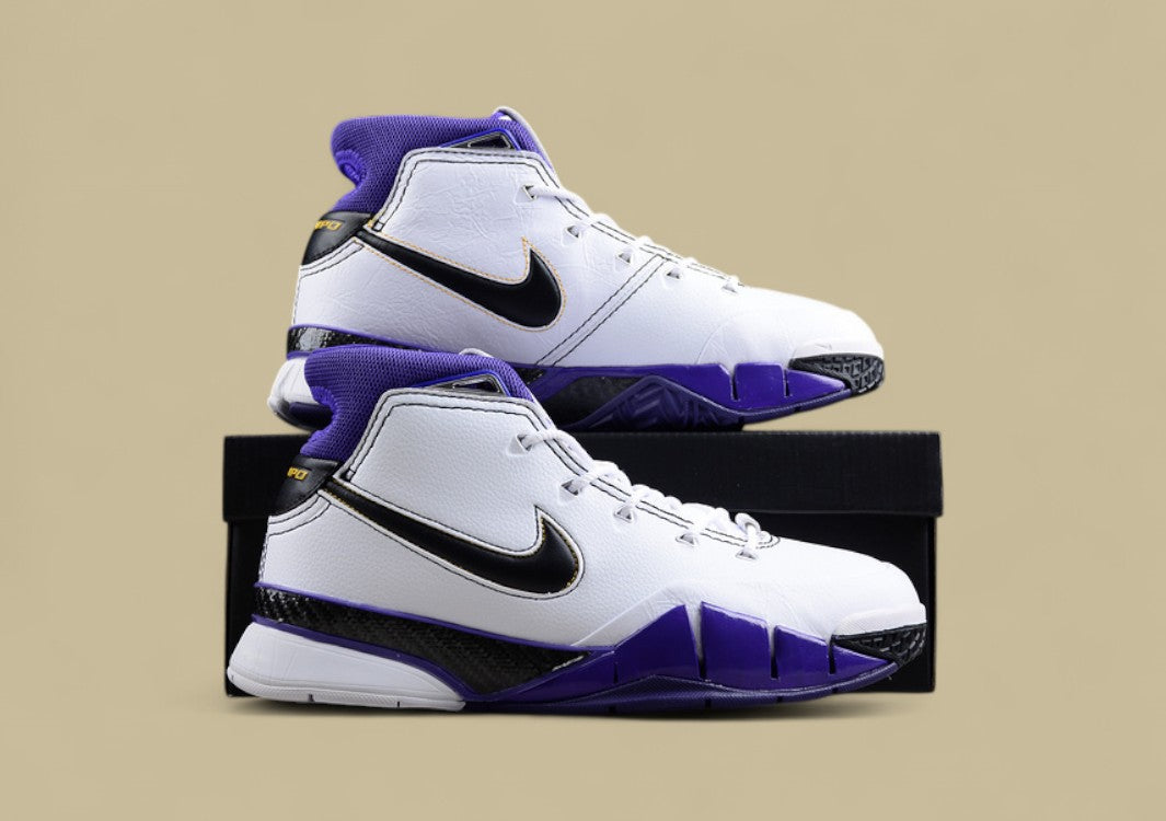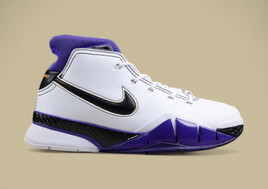 Kobe 1 Protro „81 Points“ – weißer Klassiker mit Lakers-Farben & historischem Bezug.Ein Performance-Sneaker, der Basketballgeschichte atmet.
