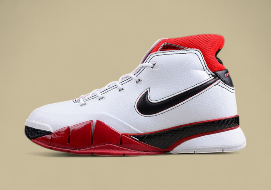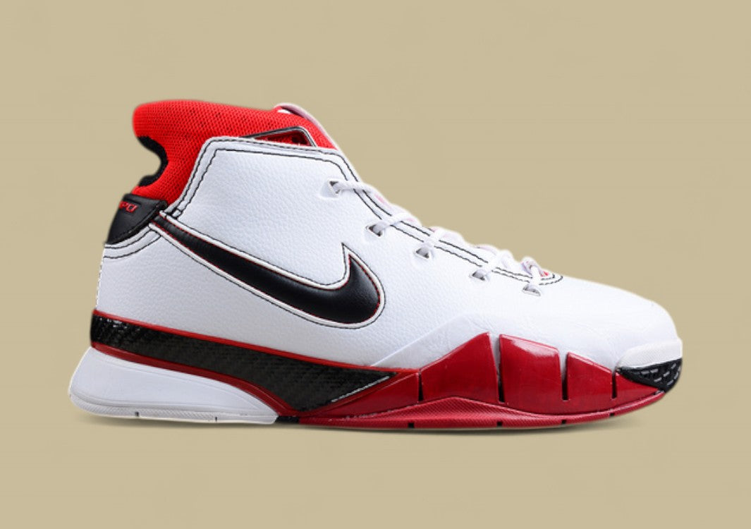 Kobe 1 Protro „All-Star“ in Weiß mit schwarzen & roten Akzenten – klassisch & kraftvoll.Hommage an Kobes 2006 All-Star Game mit modernisierter Performance.