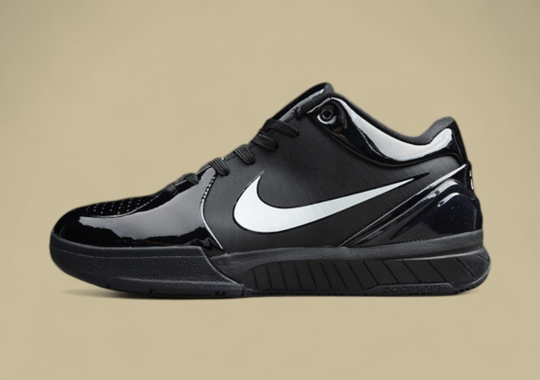Die Zoom Kobe 4 Protro Basketballschuhe bestechen durch klassisches Schwarz mit weißen Akzenten.Leicht, komfortabel und ideal für schnelle Basketball-Moves.