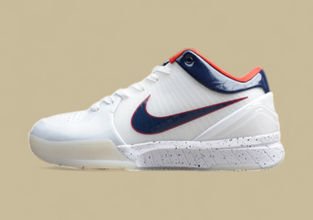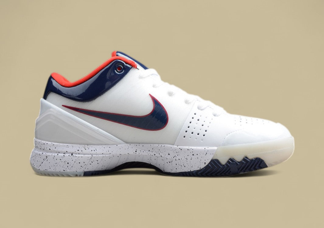 Die Zoom Kobe 4 Protro Basketballschuhe bestechen durch klassisches Weiß und Navy Blau.Leicht, komfortabel und ideal für schnelle Basketball-Moves.