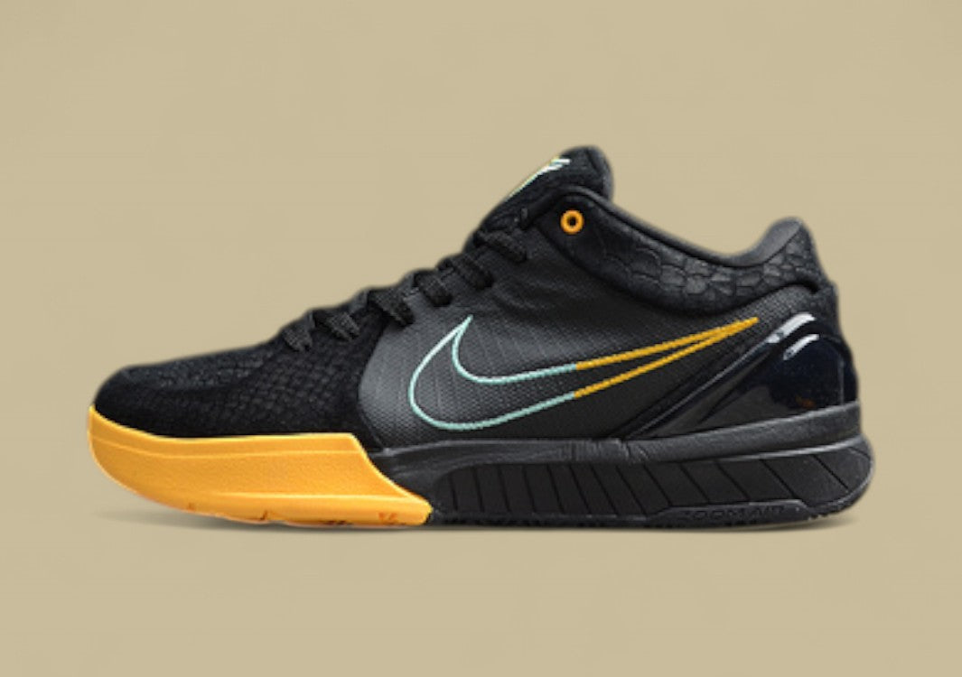 Der Zoom Kobe 4 Protro besticht durch kräftiges Schwarz mit grünen und goldenen Akzenten.Leicht, komfortabel und ideal für schnelle Basketball-Moves.