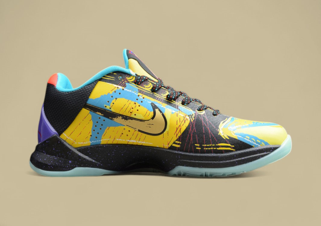 Der Zoom Kobe 5 Prelude in Schwarz, Gelb und Blau verbindet ein markantes Farbdesign mit moderner Basketball-Technologie. Das leichte Obermaterial sorgt für eine sockenähnliche Passform und optimale Atmungsaktivität. Die Zoom Air-Dämpfung bietet schnellen Komfort und reaktionsschnelle Bewegungen auf dem Court. Die robuste Außensohle garantiert zuverlässigen Grip bei schnellen Richtungswechseln. Ein stylischer Sneaker, der Funktionalität und auffälligen Style perfekt kombiniert.